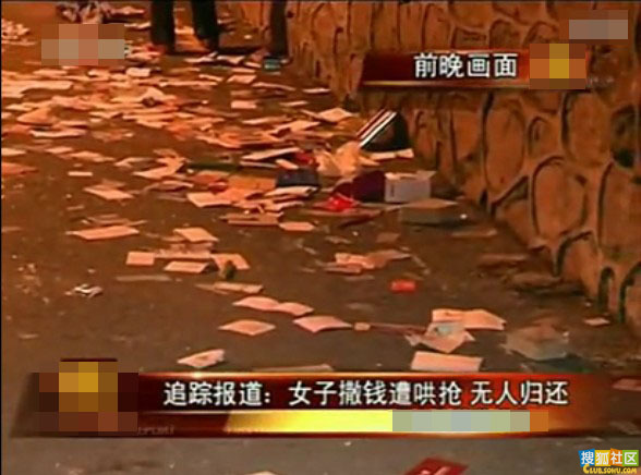 深圳女子二楼疯狂撒钱 遭市民疯抢(图)