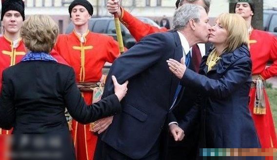 好色的布什,老婆强拉都拉不住,还是让他得手了(图)
