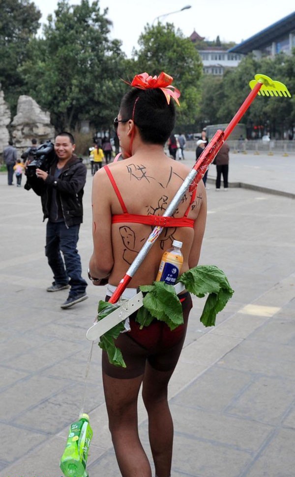 > 贵阳裸身新郎被穿黑丝袜和红内衣裤游街(组图)(2)